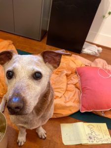 But ol’ Trousie and her family are practicing social distancing, so we haven’t seen her in nearly a month. And I haven’t mentioned yet that we have a 15-year-old daughter for whom a part-time dog has never been quite adequate. Enter Slinky.