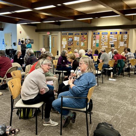 support voting rights and democracy. As we debriefed the exercise there was a common thread of seeking others with similar values and diverse ways to work towards a massive voter turnout November 2024. Comments were made about moving away from fear and despair through collective efforts to get out the vote and build relationships with those outside our circles. That is what was happening at our gathering organized in partnership with Carolina Jews for Justice(CJJ) community organizer Lisa Forehand, Congregation Beth HaTephila Voting Rights lay leader Sam Hausfather and our UU the Vote lead Joanne Fox. By the end of our meeting, everyone left having met at least two new people who share their passion for voting rights and with a commitment to explore one of the various ways they can engage. At our next meeting (Date TBA; consider joining in!) we will follow up for updates and form groups interested in similar activities: canvassing, registering voters, post carding, etc. If you are interested in canvassing the next WNC Votes nonpartisan canvassing is this Sat. April 20. Details here. A few quotes from participants: