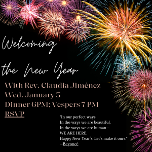 NOVEMBER 2 1st Wed. Dinner, 6:00 PM & Vespers, 7:00 PM. Vespers leader: Rev. Claudia; Musician: Cellist, Quetzal Jordan There is no fee for dinner. Click here to support this mid-week opportunity for fellowship and worship. Let us know if you plan to attend so we can plan accordingly. Thank you!